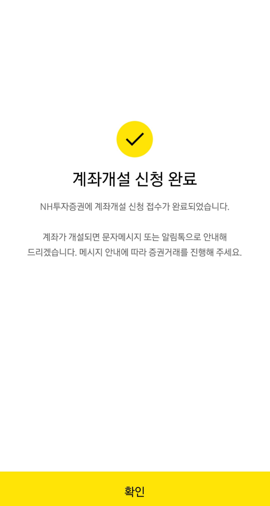 신분증 인증을 통해서 계좌개설을 신청하면 얼마뒤 NH투자증권으로 부터 계좌개설 완료에 대한 메세지를 받게 된다.