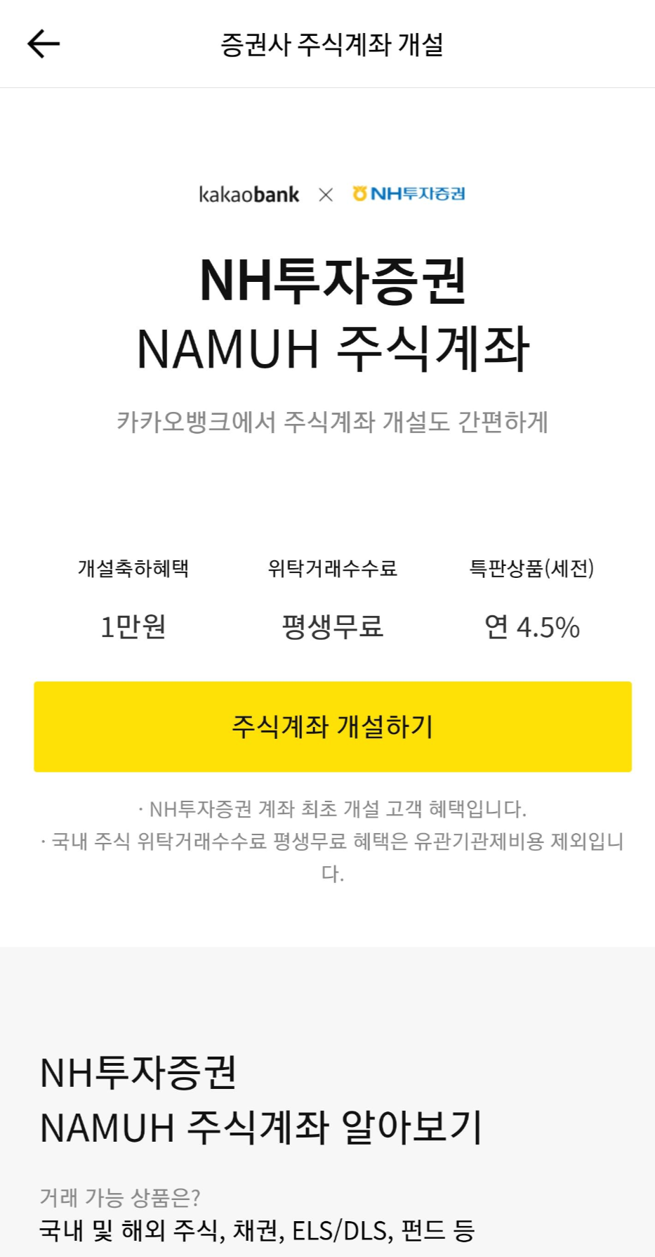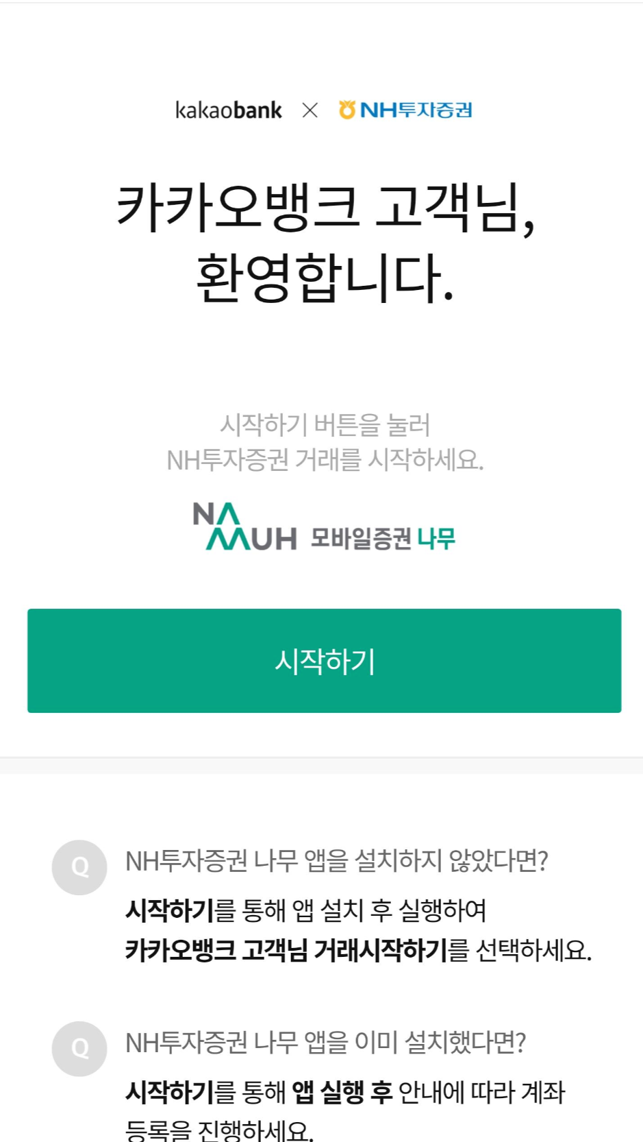 나는 이미 카카오뱅크를 사용하고 있어서 별도의 가입과정없이 바로 NH투자증권 주식계좌 단계로 넘어갈 수 있었다.
