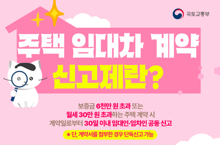 - 새로운 계약은 물론, 임대료가 변동된 갱신 계약도 신고해야 합니다.