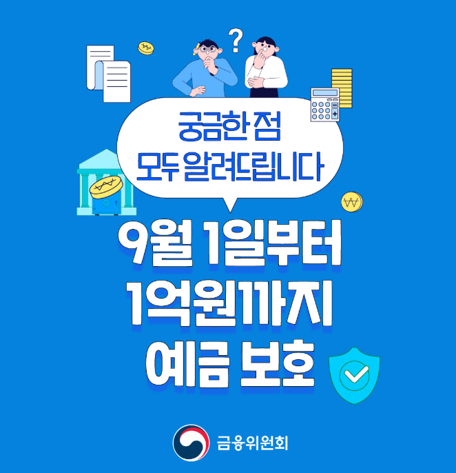 - 한도 상향일인 9월 1일 이전에 가입한 예금이라도, 9월 1일 이후에는 모두 1억 원까지 보호되니 걱정 마세요! 😉