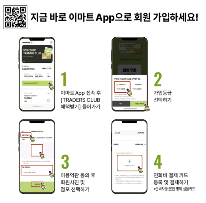 - 키오스크 가입: 일부 트레이더스 매장에는 멤버십 가입을 위한 키오스크가 설치되어 있어, 직접 정보를 입력하고 결제하여 간편하게 가입할 수 있습니다.