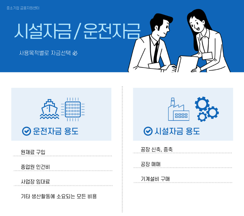 - 신성장 기반 자금: 스마트공장 구축, 신기술 도입, 생산성 향상을 위한 시설 투자 등을 지원하여 기업의 성장을 돕습니다.