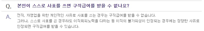 자발적인 이직 사유와 비자발적인 이직사유를 어떻게 구분할 것인가에 대한 판단이 조금씩 다르긴 한데. 이부분에대한 질문사항을 고용보험 홈페이지를 통해 참고해보면 다음과 같다.