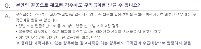 법적으로 문제가 되거나 회사에 상당한 손해를 끼치게 되는 경우에는 비자발적으로 실직상태가 되었다고 해도, 구직급여 수급 대상자가 될 수 없다.