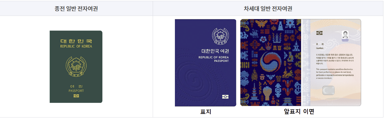 | 구분 | 차세대 전자여권 | 기존 일반여권 | ||