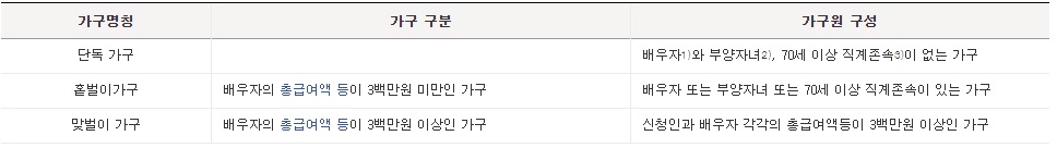 * 부양자녀 : 19세 미만 이고 소득금액이 100만원 이하, 동일주소 거주하는 중증장애인(연령제한 없음) 이고 연간 소득금액이 100만원 이하.