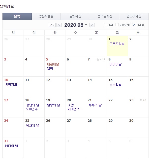 | 어버이날 임시공휴일?!! - 법정공휴일 지정될 수 있을까? (10) | 2020.05.07 |