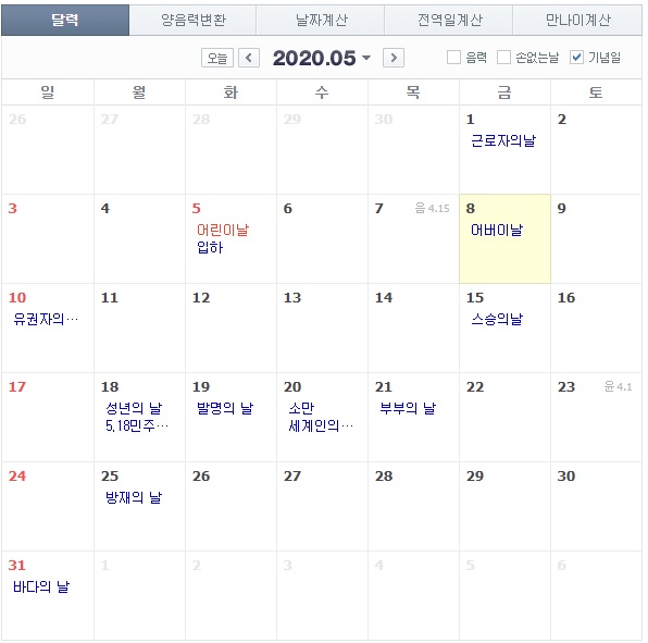 욕심이 끝이 없는걸까? 직장인들에게 휴일은 많으면 많을 수록 좋은 법이기에, 문득 어버이날도 공휴일이라면 어떨까? 라는 생각이 들었다.