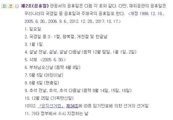 그러나 그렇다 하더라도 법적으로 지정된 법정공휴일은 관공서가 지켜야할 의무가 있는 규정이라 사기업에서는 별도의 휴일 수당을 지급할 필요가 없었던 것이다.