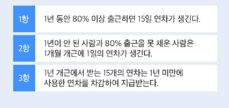 간단하게 연차 유급휴가에 대해 정리하면 크게 3가지로 압출할 수 있다.