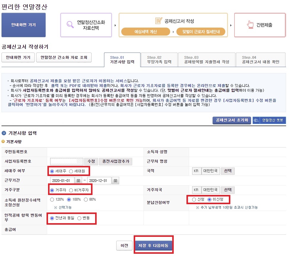 공제신고서 작성하기