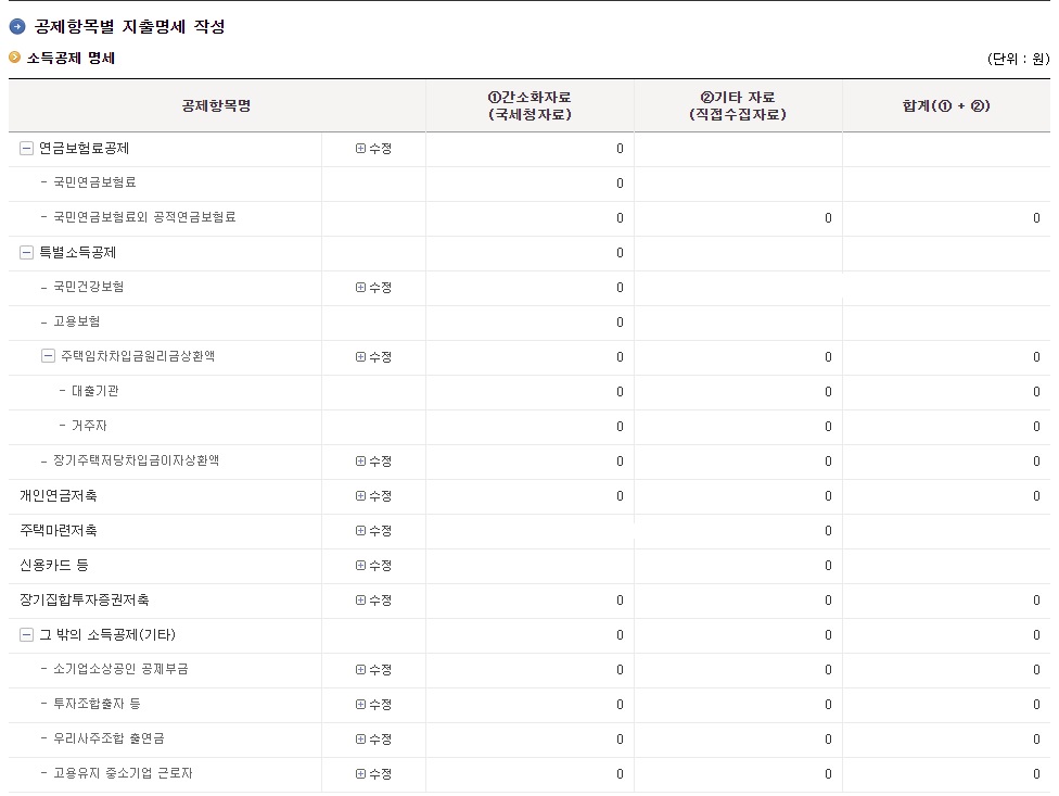 step 3. 공제항목별 지출명세 작성